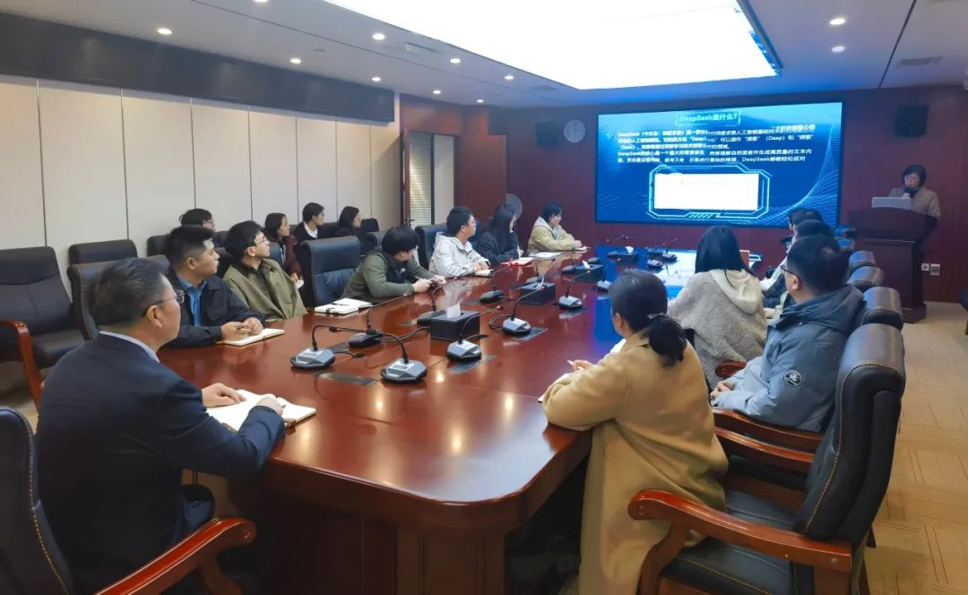會上,綜合管理部員工周莉娟以《AI智領(lǐng)未來:DeepSeek的探索和應用》為主題,圍繞人工智能綜合概述、DeepSeek的基本架構(gòu)及應用場景、DeepSeek輔助辦公的使用技巧等幾個方面進行了詳細的闡述。并通過現(xiàn)場“功能演示+實操模擬”的方式,重點展示了DeepSeek與其他人工智能大模型深度結(jié)合在文檔處理、PPT自動化生成、Excel數(shù)據(jù)分析、圖像海報設(shè)計等核心技術(shù)的實際應用。隨后,技術(shù)服務部員工林卓馳從技術(shù)研發(fā)的應用層面,展示了如何借助DeepSeek快速實現(xiàn)代碼自動化、智能化生成,助力有關(guān)行業(yè)數(shù)字化轉(zhuǎn)型升級?;迎h(huán)節(jié)中,大家積極參與互動交流,現(xiàn)場學習氛圍濃厚,大家一致表示此次培訓收獲頗豐,對AI技術(shù)尤其是 DeepSeek國產(chǎn)大模型有了全新的認知,更有效掌握了DeepSeek的基礎(chǔ)操作技能,為日后將其運用到實際工作中打下了堅實基礎(chǔ)。
