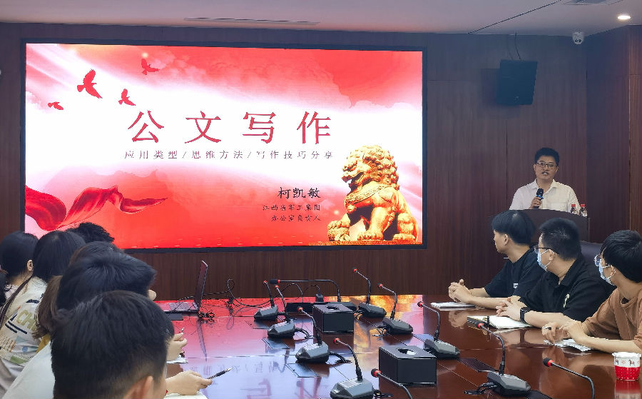 為進(jìn)一步提高公司全體員工對(duì)公文寫作的認(rèn)識(shí),促進(jìn)公司辦文水平提升,6月13日,業(yè)務(wù)管理部作為月度輪值部門舉辦了6月學(xué)習(xí)培訓(xùn)會(huì)——公文寫作。本次學(xué)習(xí)培訓(xùn)會(huì)特別邀請(qǐng)到江西省軍工控股集團(tuán)辦公室負(fù)責(zé)人柯凱敏現(xiàn)場(chǎng)授課,公司總經(jīng)理劉祖國(guó)出席并講話。