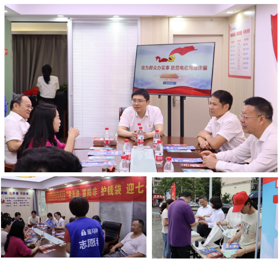 參觀結(jié)束后,全體黨員一同前往豐和花園社區(qū)開展防范非法集資宣傳主題活動(dòng)?;顒?dòng)現(xiàn)場(chǎng),大家擺設(shè)防非宣傳展板、設(shè)立咨詢臺(tái)、發(fā)放宣傳手冊(cè)、開展藍(lán)馬甲防非公益宣講活動(dòng),向社區(qū)居民講解了非法集資的特征、常見(jiàn)手段和防范方法,幫助提高社區(qū)居民尤其是廣大老年人群體對(duì)非法集資危害性的認(rèn)識(shí)和識(shí)別能力。徐鶴飛同志并率隊(duì)來(lái)到社區(qū)黨支部,向支部負(fù)責(zé)同志了解社區(qū)基本情況,關(guān)心實(shí)際問(wèn)題,并號(hào)召轄區(qū)內(nèi)相關(guān)單位積極加入到社區(qū)服務(wù)工作中。