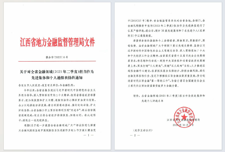 根據(jù)省委組織部 省金融監(jiān)督管理局黨組《關(guān)于進(jìn)一步激勵(lì)全省金融領(lǐng)域廣大干部在防范化解重大金融風(fēng)險(xiǎn)攻堅(jiān)戰(zhàn)中展現(xiàn)新?lián)?dāng)實(shí)現(xiàn)新作為的工作方案》(簡(jiǎn)稱工作方案)(贛金黨字〔2019〕17號(hào)),省金融監(jiān)管局牽頭組織開展了全省金融領(lǐng)域(2023年二季度)擔(dān)當(dāng)作為先進(jìn)典型推薦報(bào)送及評(píng)選工作。