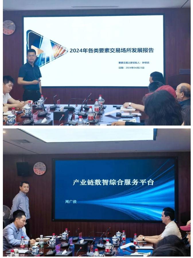 劉祖國(guó)對(duì)各位參會(huì)人士的到來(lái)表示歡迎,并重點(diǎn)介紹了兩位與會(huì)專家。鐘幫武專家以《2024年各類要素交易場(chǎng)所發(fā)展報(bào)告》為主題,重點(diǎn)從各類交易場(chǎng)所概述、監(jiān)管體系、全國(guó)各省市交易場(chǎng)所發(fā)展現(xiàn)狀及發(fā)展趨勢(shì)、業(yè)務(wù)模式等方面做了全面深入的闡釋,并結(jié)合江西省交易場(chǎng)所行業(yè)發(fā)展現(xiàn)狀及特點(diǎn),對(duì)我省各交易場(chǎng)所轉(zhuǎn)型發(fā)展方向和定位等提出了諸多具有較強(qiáng)針對(duì)性和實(shí)用性的意見(jiàn)和建議。周廣俊專家以《產(chǎn)業(yè)鏈數(shù)智綜合服務(wù)平臺(tái)》為主題進(jìn)行分享交流,詳細(xì)介紹了一體化定價(jià)、招采、產(chǎn)能預(yù)售和含權(quán)貿(mào)易等模式在不同業(yè)務(wù)場(chǎng)景下的創(chuàng)新和應(yīng)用。他提出,大宗商品交易平臺(tái)要向產(chǎn)業(yè)鏈數(shù)智綜合服務(wù)平臺(tái)升級(jí),提供“期現(xiàn)結(jié)合的創(chuàng)新交易+科技供應(yīng)鏈金融+智能商品銀行”組合(結(jié)構(gòu)化)服務(wù),促進(jìn)產(chǎn)業(yè)鏈價(jià)值流通賦能,數(shù)智化轉(zhuǎn)型發(fā)展。