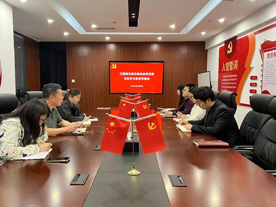 5月9日,江西省交易市場(chǎng)協(xié)會(huì)黨支部召開黨紀(jì)學(xué)習(xí)教育專題會(huì)議,傳達(dá)學(xué)習(xí)習(xí)近平總書記有關(guān)重要講話和重要指示精神,貫徹落實(shí)黨中央及省委和省金融工委關(guān)于開展黨紀(jì)學(xué)習(xí)教育的決策部署要求。協(xié)會(huì)執(zhí)行會(huì)長(zhǎng)劉祖國(guó)主持會(huì)議,支部全體黨員(含預(yù)備黨員)、發(fā)展對(duì)象和入黨積極分子一同參會(huì)。