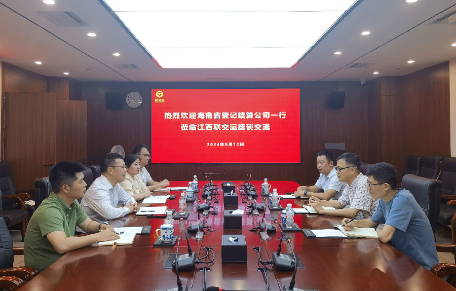 6月12日,海南省登記結(jié)算有限責(zé)任公司(以下簡(jiǎn)稱“海南結(jié)算”)董事長(zhǎng)文于佳一行蒞臨江西聯(lián)交運(yùn)座談交流,公司董事、總經(jīng)理劉祖國(guó),副總經(jīng)理羅莉及相關(guān)部門負(fù)責(zé)同志現(xiàn)場(chǎng)接待并座談交流。