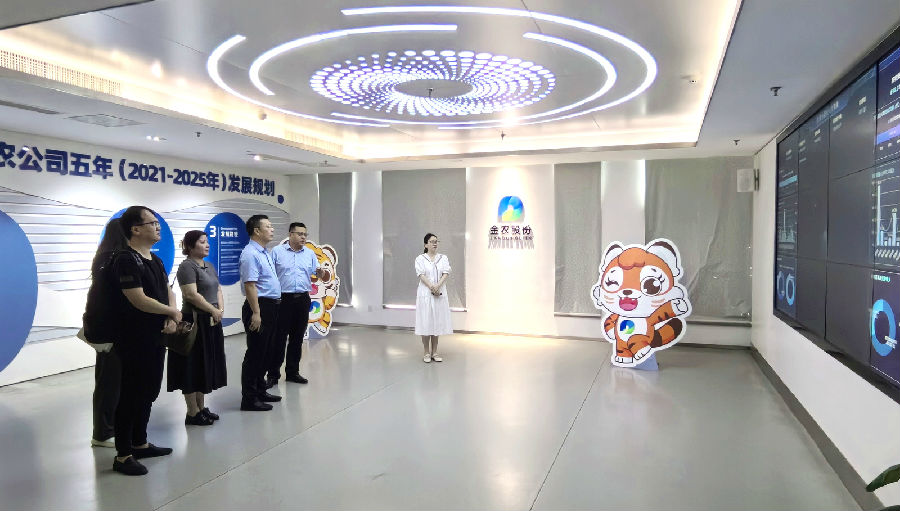 郭朝暉一行首先觀摩了“贛金衛(wèi)士”監(jiān)管信息展示大屏,詳細(xì)了解公司相關(guān)輔助監(jiān)管平臺(tái)建設(shè)成果,并對(duì)公司在輔助監(jiān)管等方面的探索實(shí)踐工作及良好成效表示高度肯定。