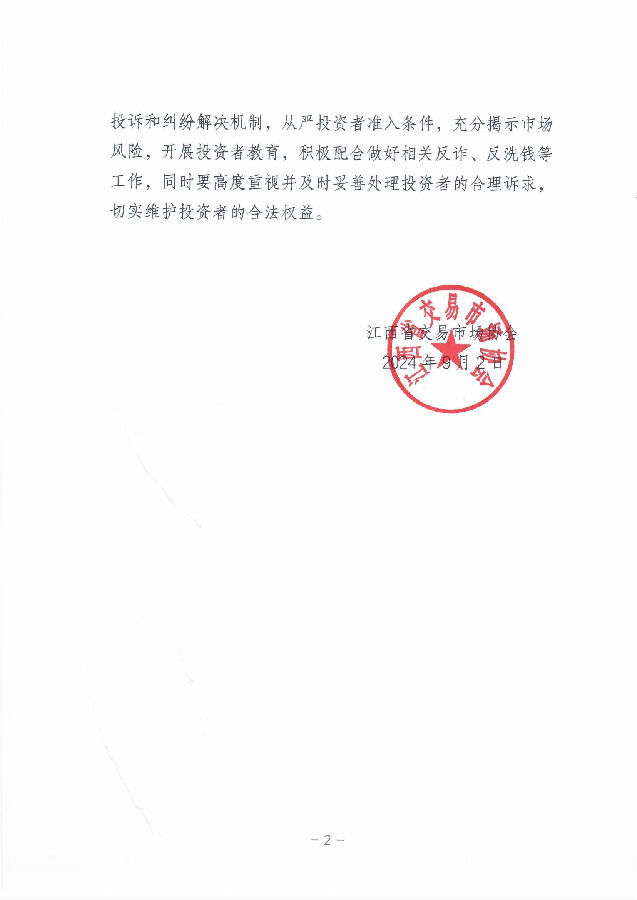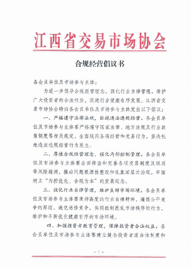 下一步,江西省交易市場(chǎng)協(xié)會(huì)將認(rèn)真按照上級(jí)主管部門和省金融局行業(yè)綜合黨委的各項(xiàng)要求,強(qiáng)化黨建引領(lǐng)和行業(yè)指導(dǎo)作用,推動(dòng)協(xié)會(huì)規(guī)范建設(shè),增強(qiáng)行業(yè)協(xié)會(huì)管理水平,為促進(jìn)行業(yè)高質(zhì)量發(fā)展作出積極貢獻(xiàn)。